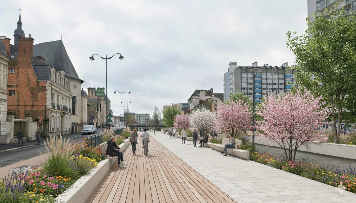 Nous proposons de piétonniser partiellement l'un des côtés des quais d'Ille-et-Rance près du pont de Brest, et travailler la continuité piétonne jusqu'aux Prairies. Les piétons doivent pouvoir se balader tranquillement le long du canal, une richesse trop peu mise en valeur aujourd'hui.