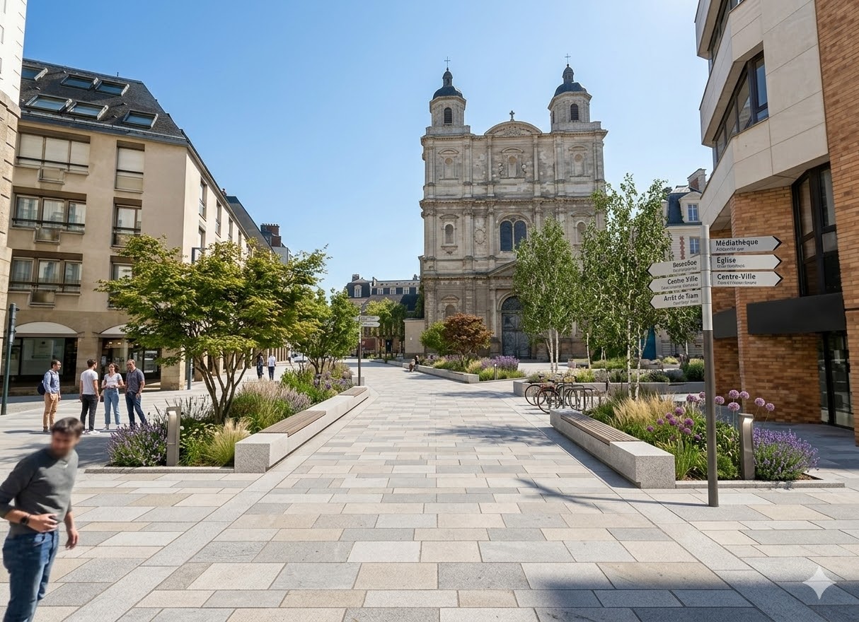 Voici la nouvelle place Toussaints piétonnisée, derrière le lycée Zola et près de la librairie la Nuit des Temps